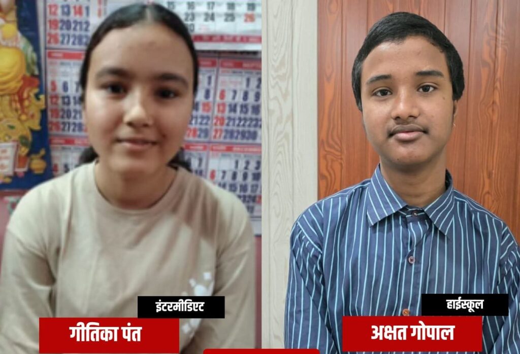 12वीं की परीक्षा में बेटियों का दबदबा साफ दिखाई दिया। सरस्वती शिशु मंदिर, बागेश्वर की छात्रा गीतिका पंत और भंजूराम अमर इंटर कॉलेज, ऊधम सिंह नगर की सुशीला मेंदीरत्ता ने 490 अंकों के साथ संयुक्त रूप से प्रथम स्थान प्राप्त किया। ऋषिकेश के आर्यन दूसरे और हरिद्वार की वंशिका तीसरे स्थान पर रहीं।