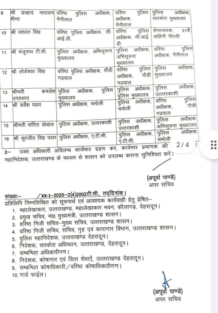 देहरादून:(रागिब नसीम)उत्तराखंड शासन से बड़ी खबर:आईपीएस अधिकारियों के स्थानांतरण तैनाती आदेश जारी। देखे लिस्ट।