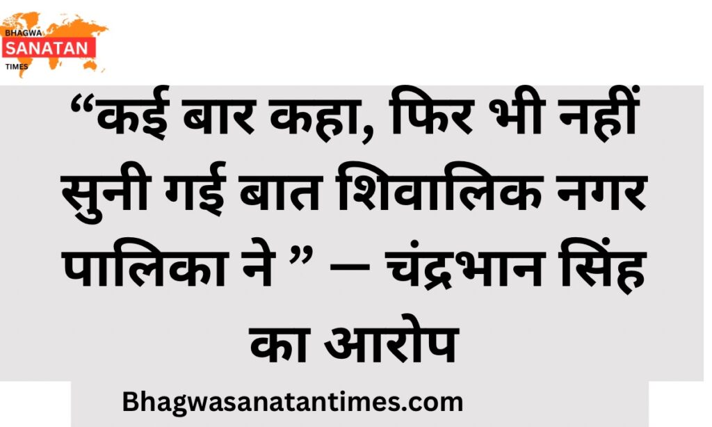 टिहरी विस्थापित कॉलोनी वार्ड नं. 6 की बदहाली पर पूर्व नामित सभासद, पूर्व भाजपा सदस्य एवं वार्ड 6 सभासद पति चंद्रभान सिंह ने नगर पालिका परिषद शिवालिक नगर के अधिकारियों पर गंभीर लापरवाही के आरोप लगाए हैं।