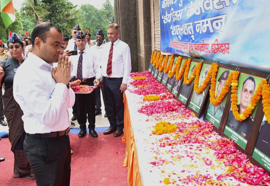 हरिद्वार:(ज़ीशान मलिक)जिला सैनिक कल्याण एवं जिला प्रशासन के संयुक्त तत्वधान में कारगिल विजय दिवस शौर्य दिवस के रूप में जनपद में धूम धाम से मनाया गया,जिसमें मुख्य अतिथि जिलाधिकारी मयूर दीक्षित ने कार्यक्रम में प्रतिभाग किया।जिलाधिकारी ने कारगिल शहीद एवं शहीद सैनिकों के चित्र पर श्रद्धासुमन अर्पित करते हुए शहीदों को नमन किया तथा शहीदों के याद में 2 मिनिट का मौन रख कर गार्ड ऑफ ऑनर दिया गया।इस अवसर पर जिलाधिकारी ने जिला कार्यालय सभागार में आयोजित कार्यक्रम में दीप प्रज्वलित कर कार्यक्रम का शुभारंभ किया। कार्यक्रम को संबोधित करते हुए जिलाधिकारी ने कार्यक्रम में उपस्थित शहीद सैनिकों की वीर नारियों,उनके परिजनों ,भूतपूर्व सैनिकों एवं कार्यक्रम में सभी उपस्थित अधिकारियों, कार्मिकों,छात्र छात्राओं,एनसीसी कैडेटों का कार्यक्रम में पहुंचने पर उनका अभिवादन किया। इस अवसर पर उन्होंने कहा कि आज हम कारगिल विजय दिवस की 26 वी वर्षगांठ मना रहे है इस दिन हमारे जाबांज सैनिकों ने दुश्मन देश के सैनिकों को खदेड़ते हुए युद्ध में विजय हासिल की है। उन्होंने कहा कि इस युद्ध में हमारे वीर सैनिकों ने अदम्य साहस एवं बहादुरी का परिचय देते हुए विजय हासिल की तथा इस युद्ध में प्रदेश के 75 सैनिकों ने देश की रक्षा के लिए अपने प्राणों की आहुति दी है, ऐसे वीर जवानों को एवं उनके माता पिता को शत शत नमन है।