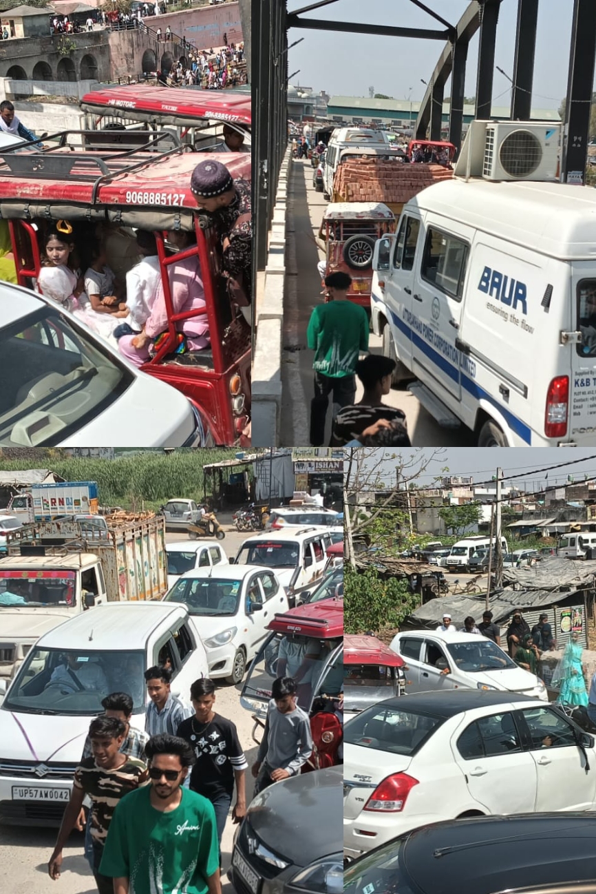 पिरान कलियर:(ज़ीशान मलिक)कलियर में नौचंदी जुमेरात के मौके पर भारी भीड़ उमड़ने से पिरान कलियर में भीषण जाम की स्थिति बन गई। हजारों की संख्या में पहुंचे जायरीन को घंटों जाम में फंसे रहना पड़ा,जिससे यात्रियों को काफी परेशानियों का सामना करना पड़ा तपती धुप मे घंटो तक लगे रहे कतार मे।
