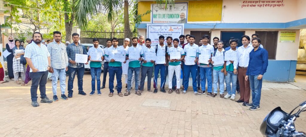 पिरान कलियर (रागिब नसीम):पिरान कलियर में वे टू लाइव फाउंडेशन द्वारा आयोजित एक भव्य समारोह में प्रधानमंत्री कौशल विकास योजना (PMKVY 4.0) के तहत 435 युवाओं को विभिन्न क्षेत्रों में उनकी उत्कृष्टता के लिए सर्टिफिकेट और टी-शर्ट किट प्रदान कर सम्मानित किया गया।