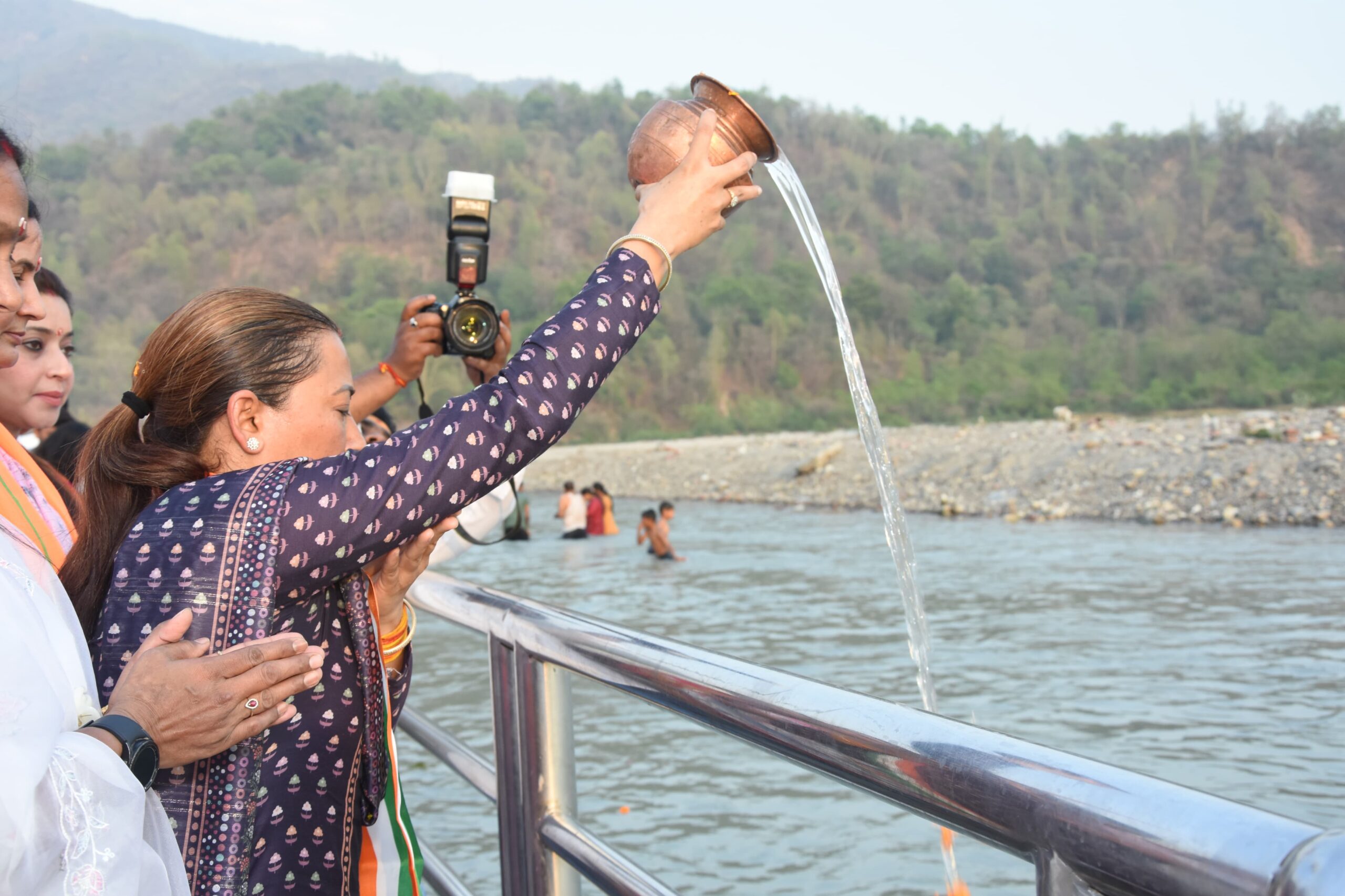 तिरंगा शौर्य सम्मान यात्रा के बाद कैबिनेट मंत्री रेखा आर्या ने त्रिवेणी घाट पर गंगा आरती में हिस्सा लिया। रेखा आर्या ने बताया कि उन्होंने मां गंगा से भारतीय सेना के लिए शौर्य और पराक्रम का आशीर्वाद मांगा और यह कामना की कि भारत की शक्ति विश्व में दिन-रात इसी तरह बढ़ती रहे।