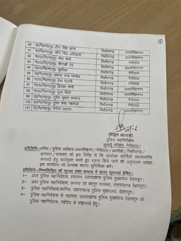 ब्रेकिंग न्यूज़ :कुमाऊं मंडल में बड़ी संख्या मे पुलिसकर्मियों क़े तबादले,देखे लिस्ट