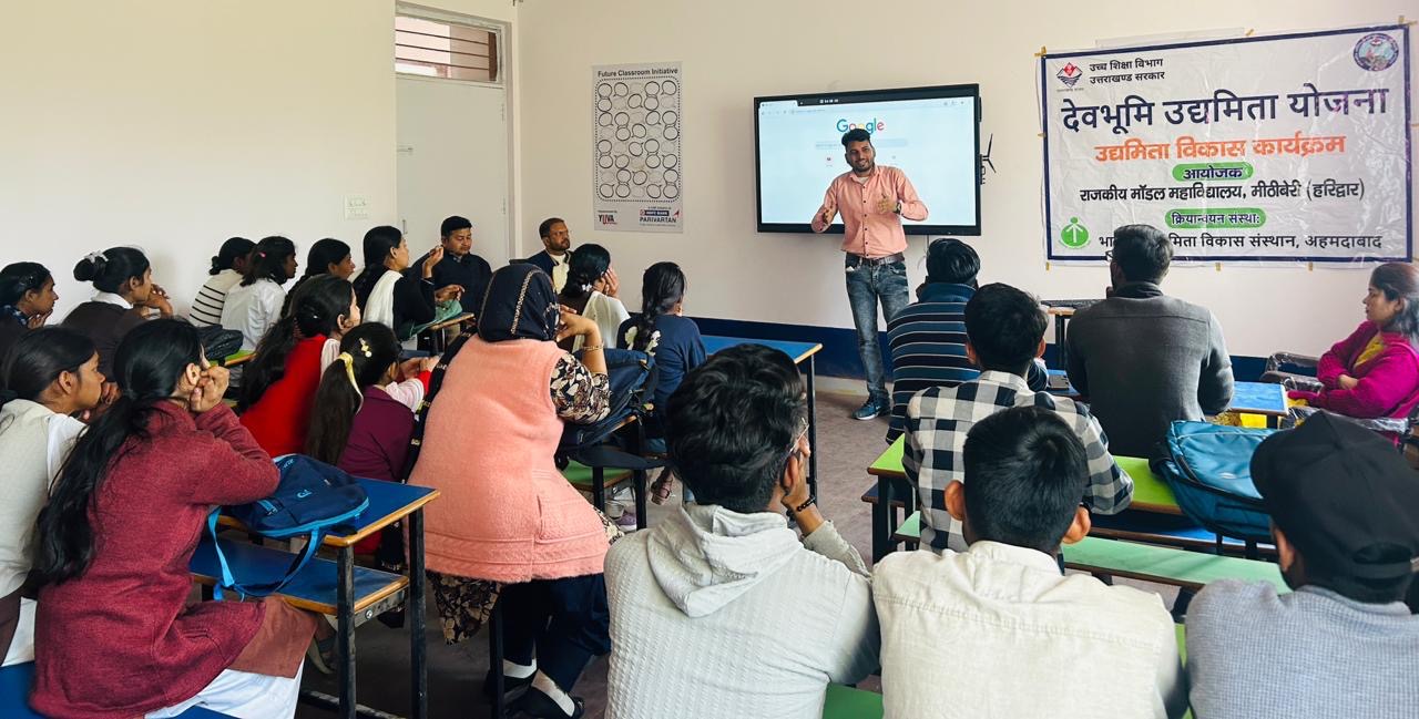 इस कार्यक्रम में देवभूमि उद्यमिता योजना के नोडल अधिकारी डॉ. कुलदीप चौधरी, त्रिलोक नारायण एवं समिति के अन्य सदस्यों ने महाविद्यालय के छात्र-छात्राओं को देवभूमि उद्यमिता किट प्रदान की। इस अवसर पर त्रिलोक नारायण ने लघु, सूक्ष्म एवं मध्यम (MSME) उद्योगों की जानकारी देते हुए बताया कि किस प्रकार से छात्र-छात्राएं इन उद्योगों की शुरुआत कर सकते हैं। उन्होंने प्रोजेक्टर के माध्यम से MSME रजिस्ट्रेशन प्रक्रिया को भी विस्तार से समझाया और विद्यार्थियों का रजिस्ट्रेशन कराया।
