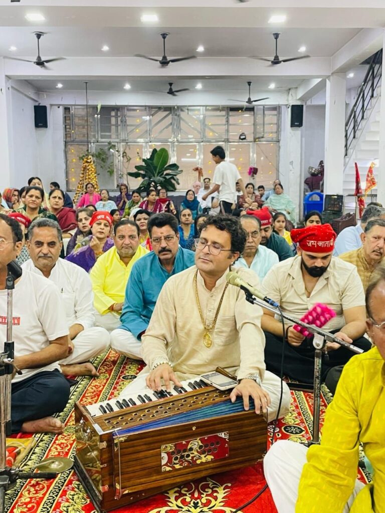 पं. शर्मा ने अपने भजनों के माध्यम से दुर्गा कवच, नवरात्र पाठ और देवी के विविध स्वरूपों का वर्णन करते हुए कहा कि माँ का स्वरूप एक है, केवल नाम अलग-अलग हैं। उनके द्वारा प्रस्तुत “मात संग चोला साजे”, “अष्टमी का दिन है अच्छा शगुन है”, “सज-धज कर बैठी माँ और मंद-मंद मुस्काये”, “झूला झूल रही माँ सखियों संग”, “पहाड़ों में कमाल हो गया” जैसे भजनों पर श्रद्धालु झूमते नजर आए।