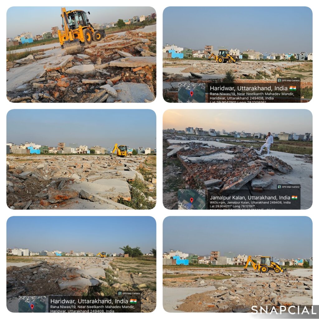 हरिद्वार:(चीफ एडिटर)धर्मनगरी में अवैध निर्माण और अनधिकृत प्लॉटिंग के खिलाफ प्रशासन ने सख्त कार्रवाई की है। हरिद्वार-रुड़की विकास प्राधिकरण की टीम ने सोमवार को जमालपुर कलाँ क्षेत्र में बुलडोजर चलाकर 8 से 10 बीघा जमीन पर विकसित हो रही अवैध कॉलोनी को ध्वस्त कर दिया।