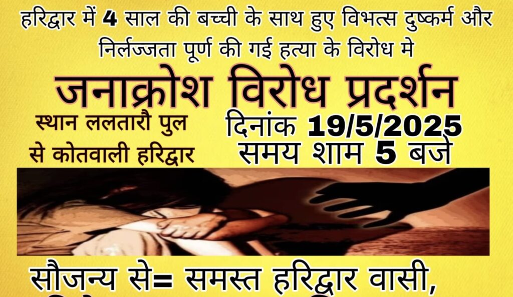 हरिद्वार की सड़कों पर उठती यह एकजुट आवाज़ अब सिर्फ न्याय की मांग कर रही है — ताकि कोई और मासूम भविष्य में इस दरिंदगी का शिकार न हो।