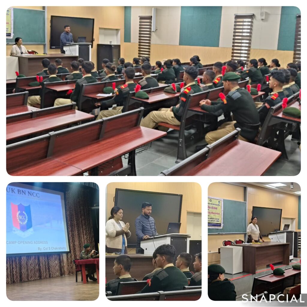 उद्घाटन सत्र में उपस्थित जिला आपदा प्रबंधन अधिकारी मीरा रावत ने राज्य में विभिन्न प्राकृतिक व मानव जनित आपदाओं की सवेदनशीता, उनके दुष्प्रभाव पर प्रकाश डालते हुए विगत वर्षों में घटित विभिन्न आपदाओं के अनुभव को साझा किया त्तथा समुदाय आधारित आपदा प्रबंधन के महत्व पर प्रकाश डालते हुए स्वयंसेवी की भूमिका से अवगत कराया ।उनके द्वारा सभी कैडेट्स को आपदा प्रबंधन अधिनियम 2005 के प्रमुख प्रावधानों, आपदा प्रतिक्रिया प्रणाली तथा स्थानीय स्तर पर आपदा प्रबंधन की संरचना के विषय में स्लाइड शो के माध्यम से व्यावहारिक तथ्यों की विस्तृत जानकारी दी गई ।