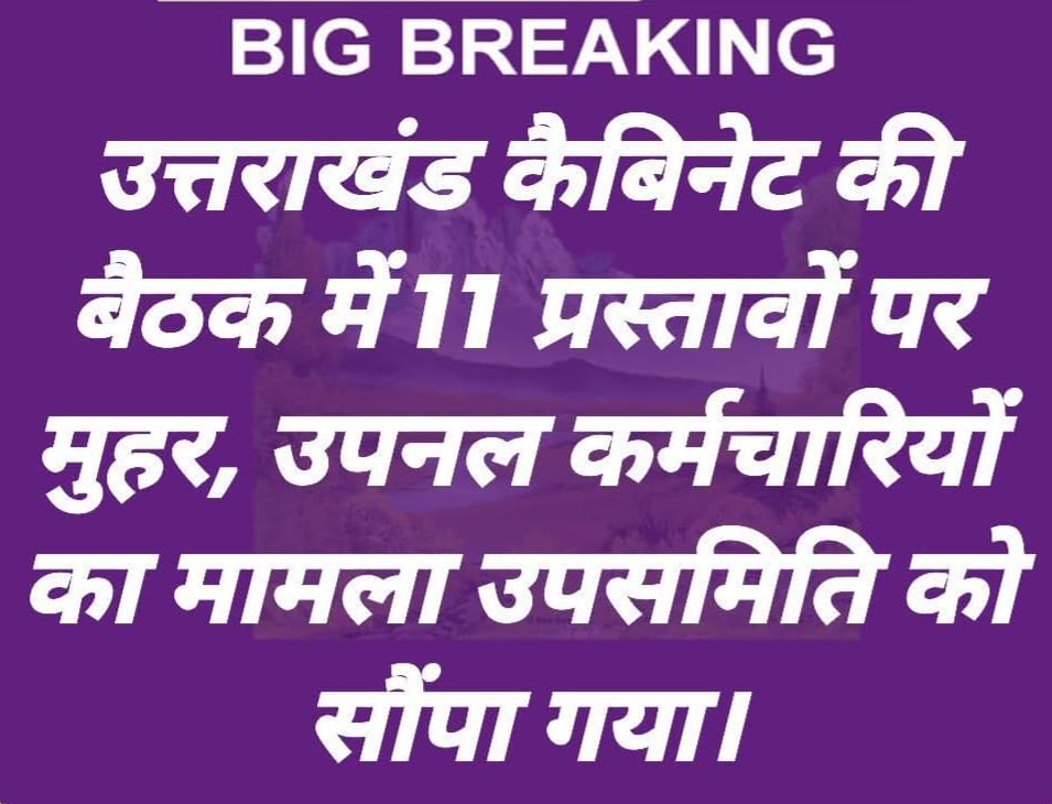 देहरादून:(रागिब नसीम)देहरादून में आज उत्तराखंड कैबिनेट की अहम बैठक संपन्न हुई। बैठक में कुल 11 प्रस्तावों पर चर्चा हुई, जिनमें कई जनहित और कर्मचारी हित से जुड़े निर्णय शामिल हैं। वहीं उपनल कर्मचारियों को समान कार्य के लिए समान वेतन का मामला कैबिनेट उपसमिति को सौंप दिया गया है।