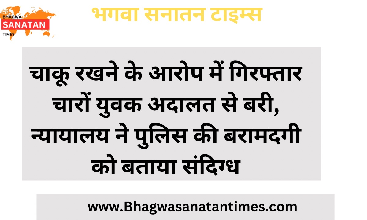 चाकू रखने के आरोप में गिरफ्तार चारों युवक अदालत से बरी, न्यायालय ने पुलिस की बरामदगी को बताया संदिग्ध